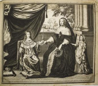 Louis XIV, Anne d'Autriche et Philippe d'Orléans, estampe, 44x54...