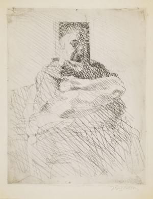 Personnage assis, eau-forte, signée, 60x43 cm