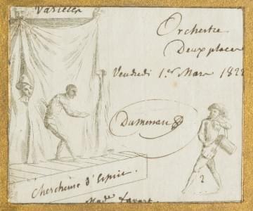 3391. Billet de théâtre, deux places orchestre pour la pièce Chercheus...