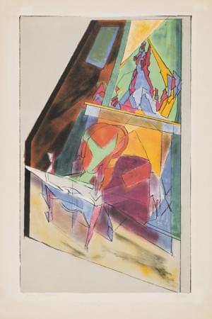 Composition abstraite, lithographie en couleurs signée dans la p...