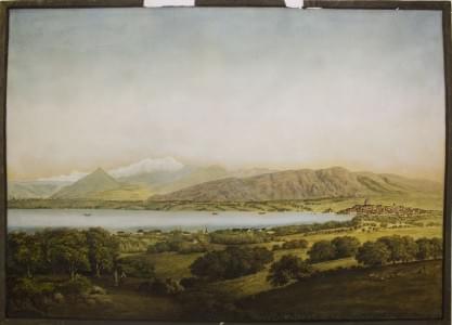 Vue de Genève, gravure aquarellée, 37x51 cm