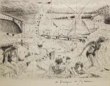 Baigneurs à la plage, eau-forte, signée, 37x45 cm