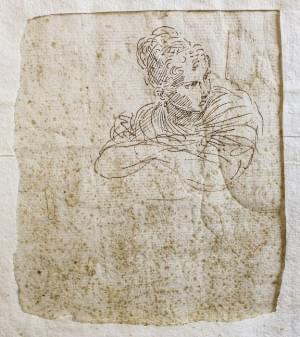 Portrait d'homme à l'écharpe, aquarelle et mine de plomb, 20x23...