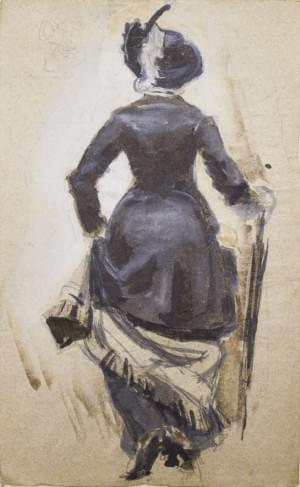Femme de dos, aquarelle et gouache sur papier,16,5x10 cm