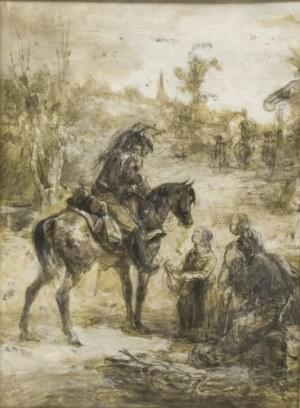 Une aquarelle signée Louis Mennet et une mine de plomb avec reha...