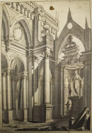 Caprice architectural, encre et lavis d'encre, 38x26 cm