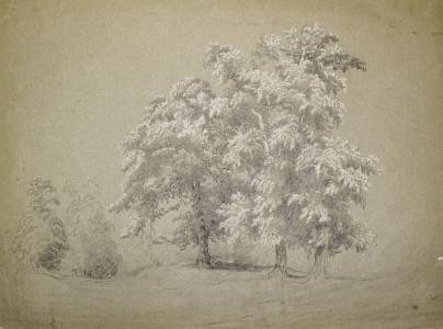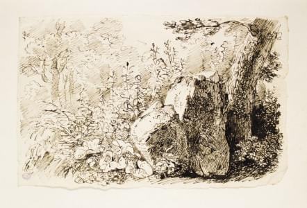 Etudes d'arbres et étude de rocher, 4 dessins à l'encre, de 11,5...