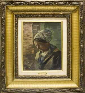 Femme au bonnet blanc, huile sur toile, signée, 23x18 cm