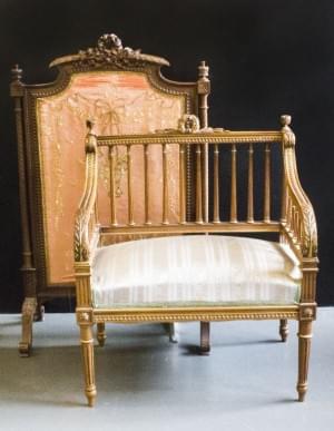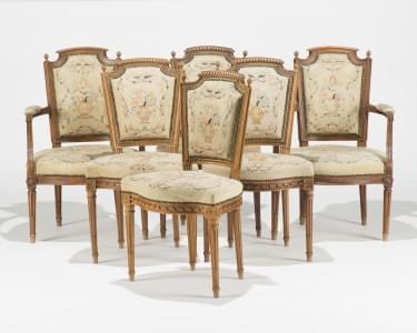 3805. Salon de style Louis XVI comprenant quatre chaises et une paire...