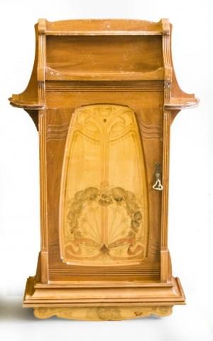 Bois fruitier à décor de rubans et guirlande végétale, 92x55x17...