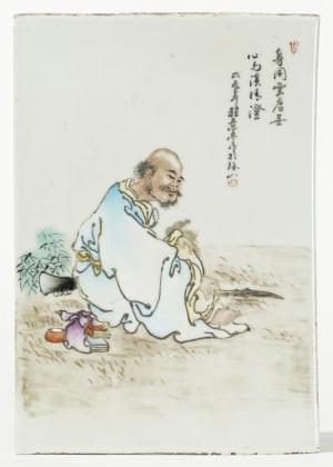 Porcelaine à décor d'un personnage et calligraphie, 36,5x25cm