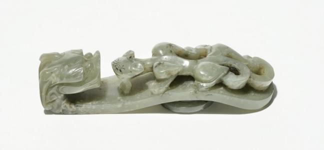 Orné de deux têtes de lion et fleurs de prunier, 7x4,5 cm