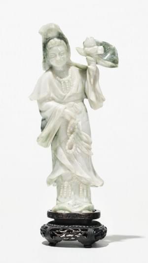 Terre cuite émaillée céladon, présenté sur un trône en bois noir...