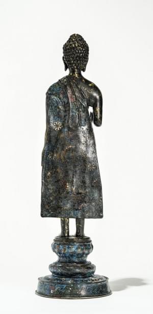 Emaux cloisonnés sur cuivre à décor de bouddha dans des nuées, m...