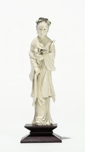 Ivoire sculpté, patine brune, signé, H 10 cm