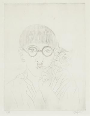 Autoportrait au chat, circa 1927, pointe sèche, signée et numéro...