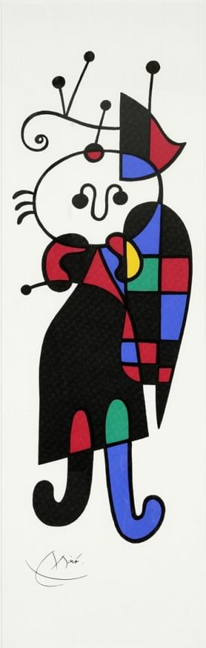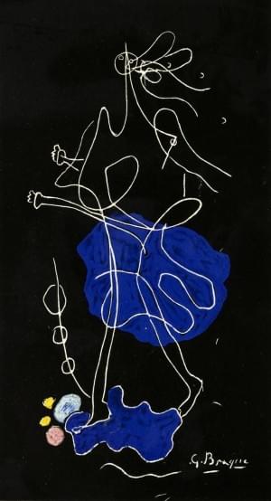 Personnage sur fond noir et bleu, sérigraphie, estampillée 'Maeg...