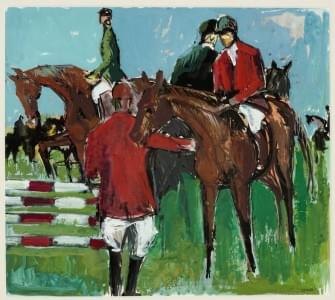 Cavaliers, gouache sur papier, monogrammée et datée 68, 43x49 cm