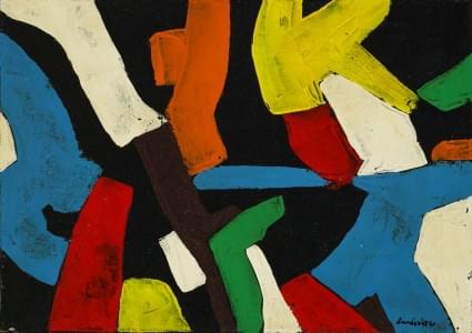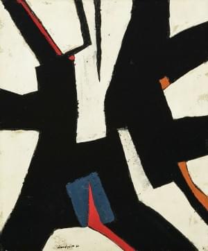 Composition abstraite, huile sur toile, signée et datée 1958 au...