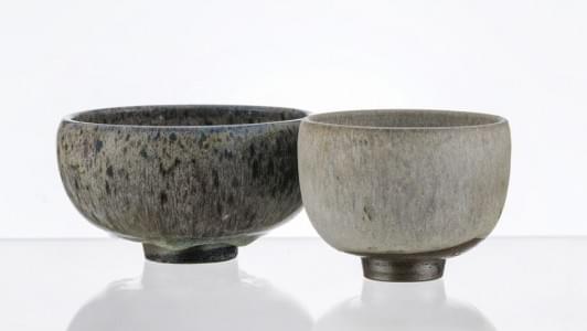 Deux bols sur talon, en grès recouvert d'un épais émail blanc à...