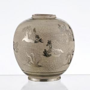 Vase ovoïde à décor d'antilopes en pleine nature, céramique émai...