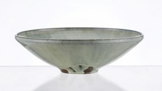 Coupe évasée japonisante à glaçure gris bleu, céramique émaillée...
