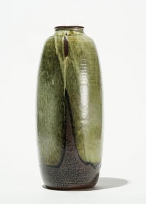 Grand vase, grès émaillé vert, gris, marron, signé en creux, H 4...
