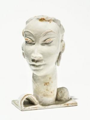 Buste d'un personnage grotesque à décor de citrons, céramique ém...