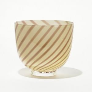 Verre, formé de bandes transversales roses, H 22 cm, D 25 cm
