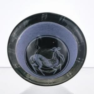 Bol à décor d'une antilope, céramique émaillée violet, signé sou...
