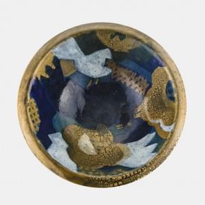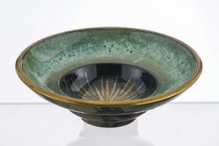 Coupe circulaire, à décor abstrait, céramique émaillée noir, ble...