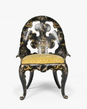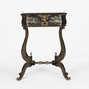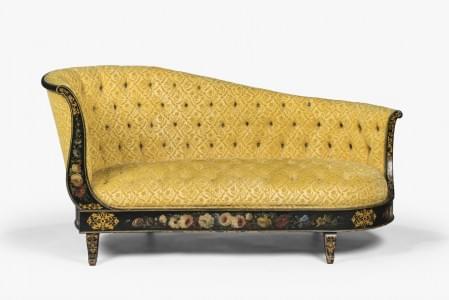 A décor de feuillages et papillons, peint doré et marqueté de na...