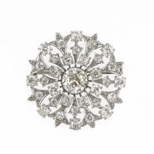248. Broche ronde sertie d'un diamant taille ancienne (env. 3 ct) ent...
