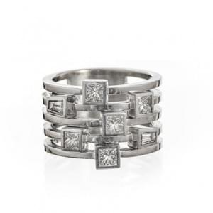 317. Bague composée de cinq anneaux ponctués de diamants tailles trap...
