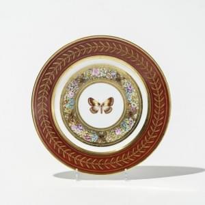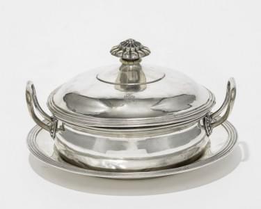412. Bouillon sur présentoir à bordure filets droits, armorié Favre