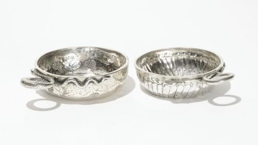 387. Deux taste-vin à anse serpents d'époque Louis XV et Louis XVI