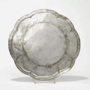 375. Bougeoir à main à bordure festonnée et gravé d'armoiries comtale...