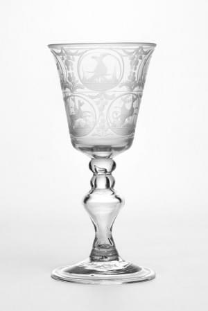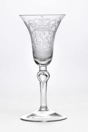 398. Verre sur pied de forme tulipe gravé aux armes de la famille roy...