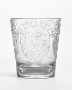 396. Timbale en verre gravée de quatre médaillons représentant les Ev...