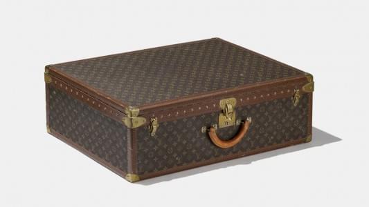 Toile enduite monogrammée et cuir, 25x80x52 cm