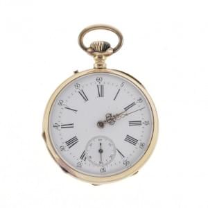 Cadran émaillé blanc, chiffres arabes et aiguilles noirs, or 750...