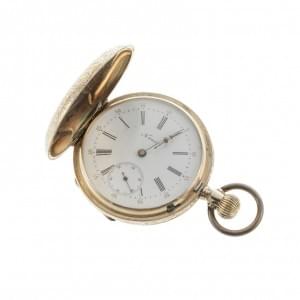 3009. Waltham, montre de poche mécanique à décor d'hirondelle et de pa...