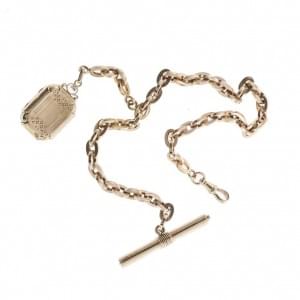 3013. Chaîne de montre maille jaseron ovale retenant un pendentif port...