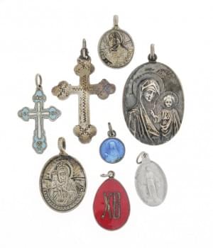 3016. Lot comprenant cinq médailles religieuses, deux croix dont une é...