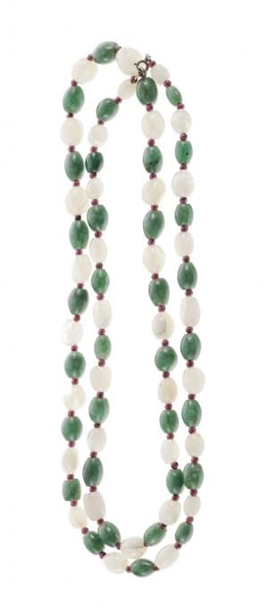 3017. Sautoir de perles d'aventurines et d'agates blanches en alternan...