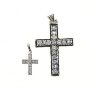 Or gris 750, L 1 cm. On joint une croix ancienne en argent serti...