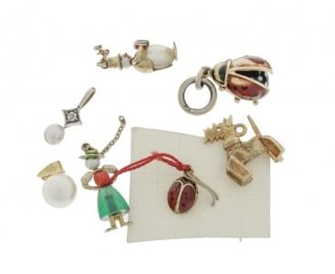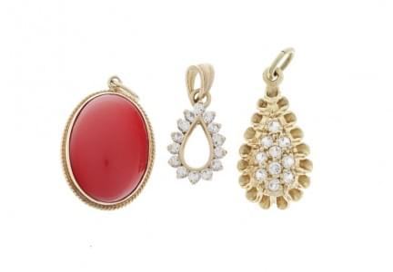 3075. Lot de trois pendentifs, un de forme losange et deux à motifs de...