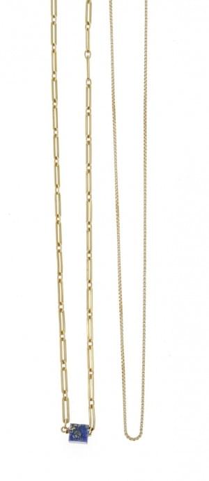 Or 750, L 40 cm, poids brut 3 g. On joint une à chaîne maille vé...