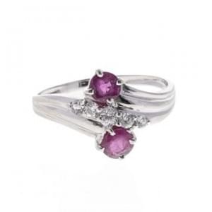 3060. Bague toi et moi sertie de deux rubis et de diamants d'imitation