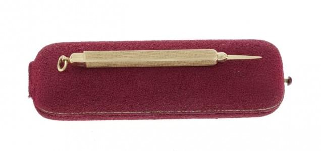 Travail ancien, or 585, L 6 cm, 8 g. Provenance: Château fribour...